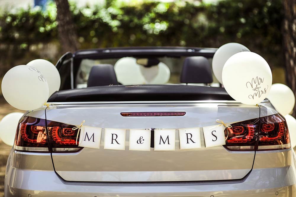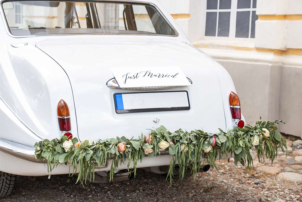 U houdt van klassiekers? Vergeet dus niet het bord "Just Married" aan de achterkant van uw auto te hangen! Beschikbaar in vele formaten en materialen (hout, metaal, kunststof ...), u zult het probleemloos in uw auto-decoratie opnemen. Als u wilt, kunt u het zelfs als sticker vinden om op de ramen te plakken!