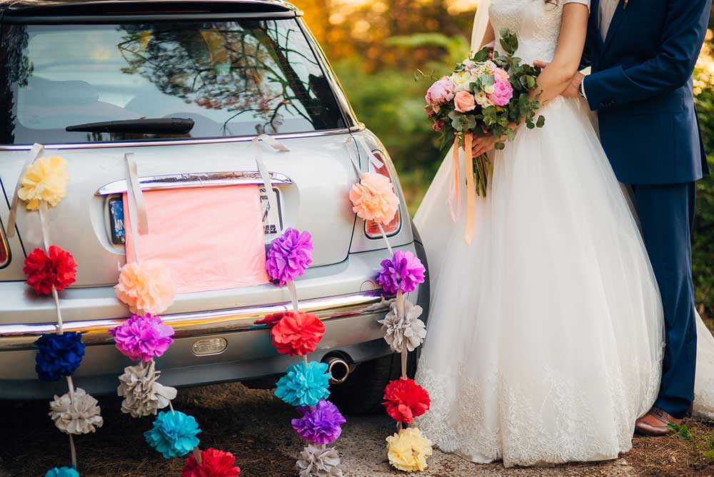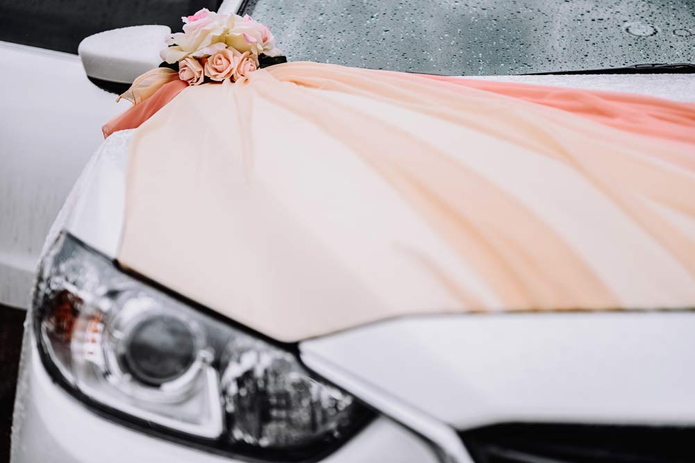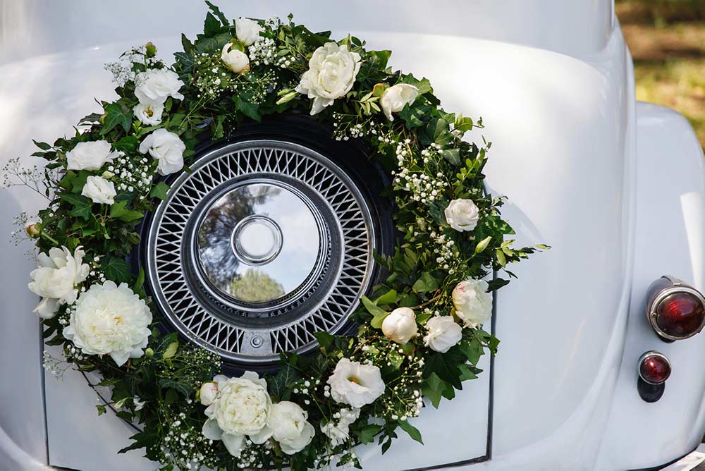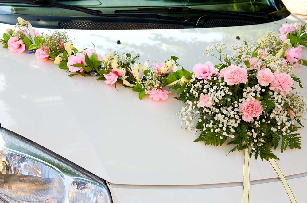 Bloemen zijn echt tijdloos en een geliefde bondgenoot als het gaat om auto-decoratie. Ze worden op zuignappen geplaatst en blijven gemakkelijk aan de motorkap van de auto plakken en blijven zo vele uren zitten. Wij adviseren u om de bloemenkrans, die eerder aan een begrafenis doet denken, te vermijden en te kiezen voor een minder gestructureerde en lichtere bloemendecoratie.