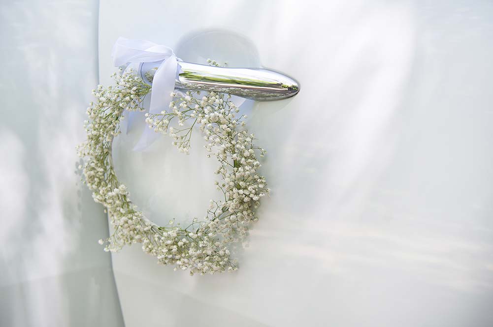 Weeral ? Toch wel! De fleurale composities passen zich perfect aan voor meerdere doeleinden! Geef voor de handgrepen van het voertuig de voorkeur aan kleine boeketten met verse bloemen of kleine kunstmatige composities die de opening van de deuren (boeketten, ringen ...) niet hinderen.