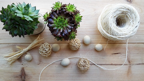Een stuk touw is genoeg om uw vetplantjes aan te kleden! U kunt kiezen voor satijn of kant lint, raffia...